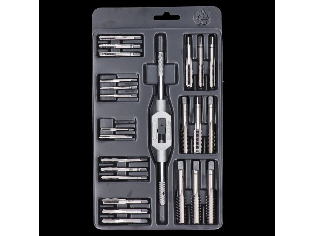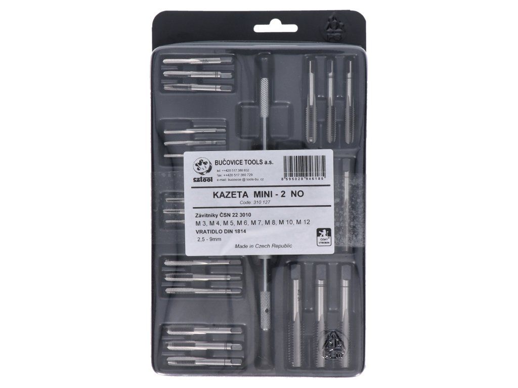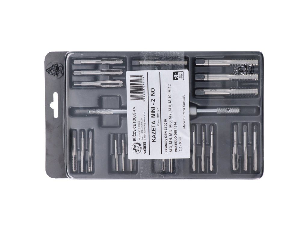 súprava závitorezných nástrojov mini-2 NO, závitníky M3, M4, M5, M6, M7, M8, M10 a M12, vratidlo 2.5-9mm