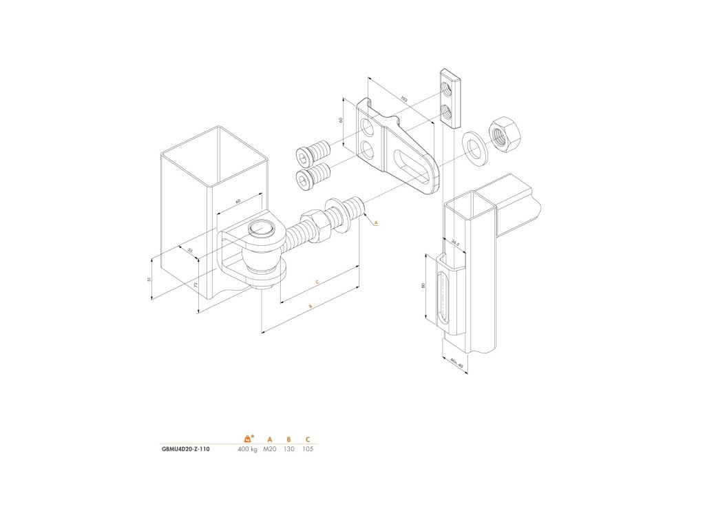 LOCINOX® GBMU4D20 navařovací pant M20, otevíratelný 180°, nastavitelný 3D, pozink
