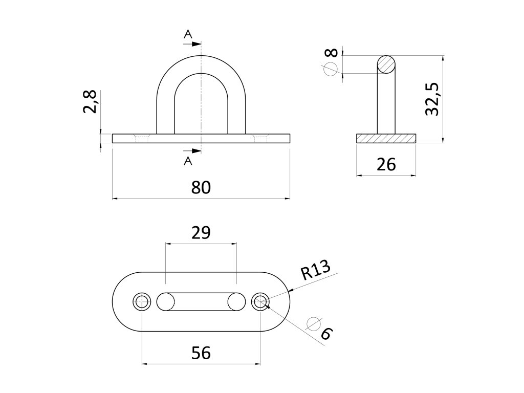 nástěnný úchyt lanka kulatý, ø oblouka 8.0mm, broušená nerez K320/ AISI304Doplňkové parametry