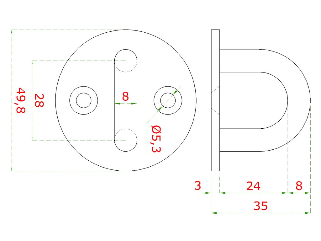 nástenný úchyt lanka oválny, ø obľúka 8.0mm, brúsená nerez K320/ AISI304