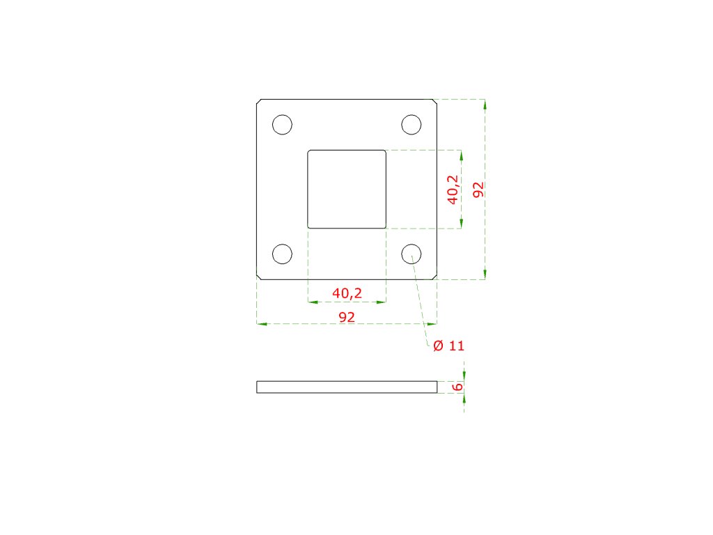 Kotevní deska (92x92 mm), otvor: 40,2x40,2 mm, broušená nerez K320 / AISI304Doplňkové parametry