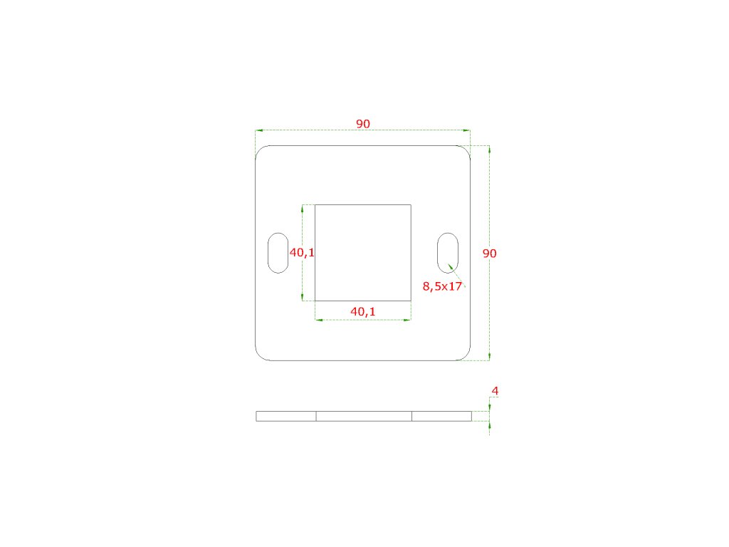 Kotvící plotna (100x100mm), otvor:40x40mm, broušená nerez K320 /AISI304Doplňkové parametry