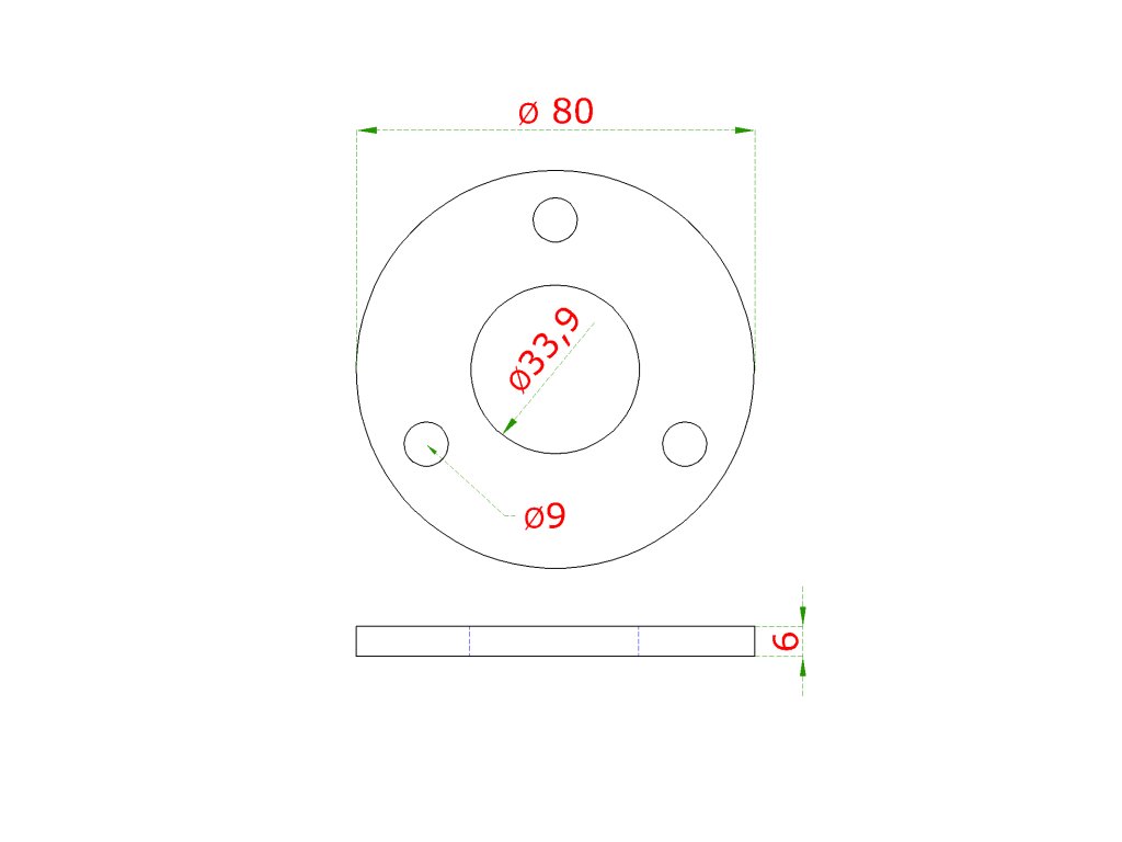 Kotevní deska (ø 80x6 mm) na trubku ø 33,7 mm (otvor ø 33,9 mm), bez povrchové úpravy /AISI304Doplňkové parametry