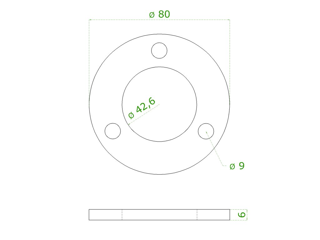 Kotevní deska (ø 80x6 mm) na trubku ø 42,4 mm, (otvor ø 42,6 mm), nerez broušená K320 / AISI304Doplňkové parametry