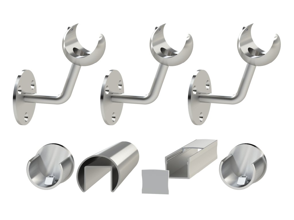 Led madlo 2250mm /broušená nerez K320 /AISI304 (set: 3ks úchyt, madlo ø 42.4mm s ukončením a hliníkový profil na led pás)