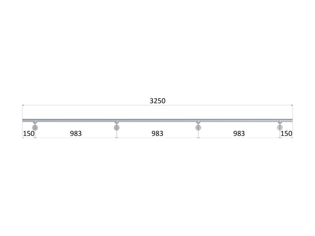 Led madlo 3250mm /broušená nerez K320 /AISI304 (set: 4ks úchyt, madlo ø 42.4mm s ukončením a hliníkový profil na led pás)