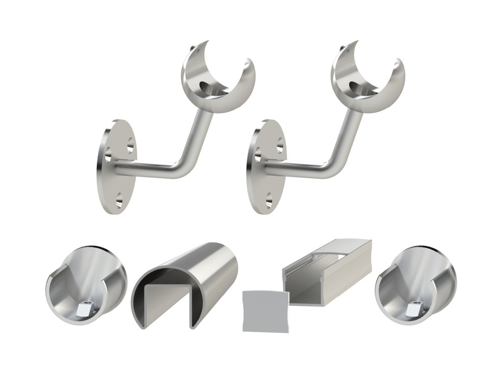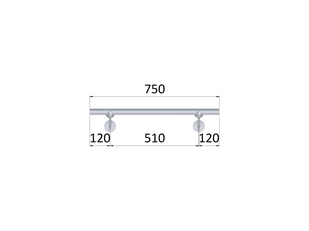 Led madlo 750mm /broušená nerez K320 /AISI304 (set: 2ks úchyt, madlo ø 42.4mm s ukončením a hliníkový profil na led pás)