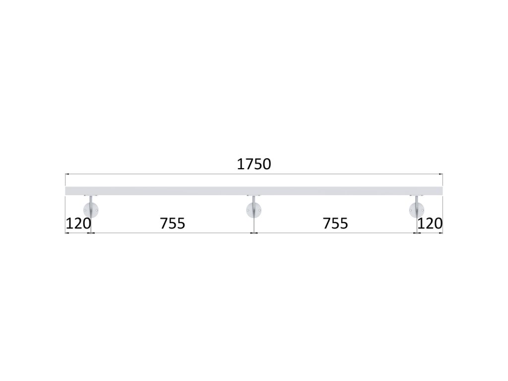Madlo 1750mm (set:3ks úchyt, madlo 40x40mm s ukončením), brúsená nerez K320 /AISI304