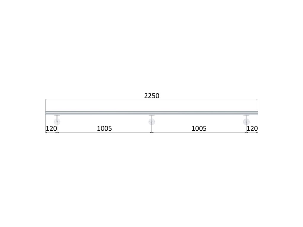 Madlo 2250 mm / leštěná nerez / AISI304, set: 3ks úchyt, madlo ø 42,4 mm s ukončenímDoplňkové parametry