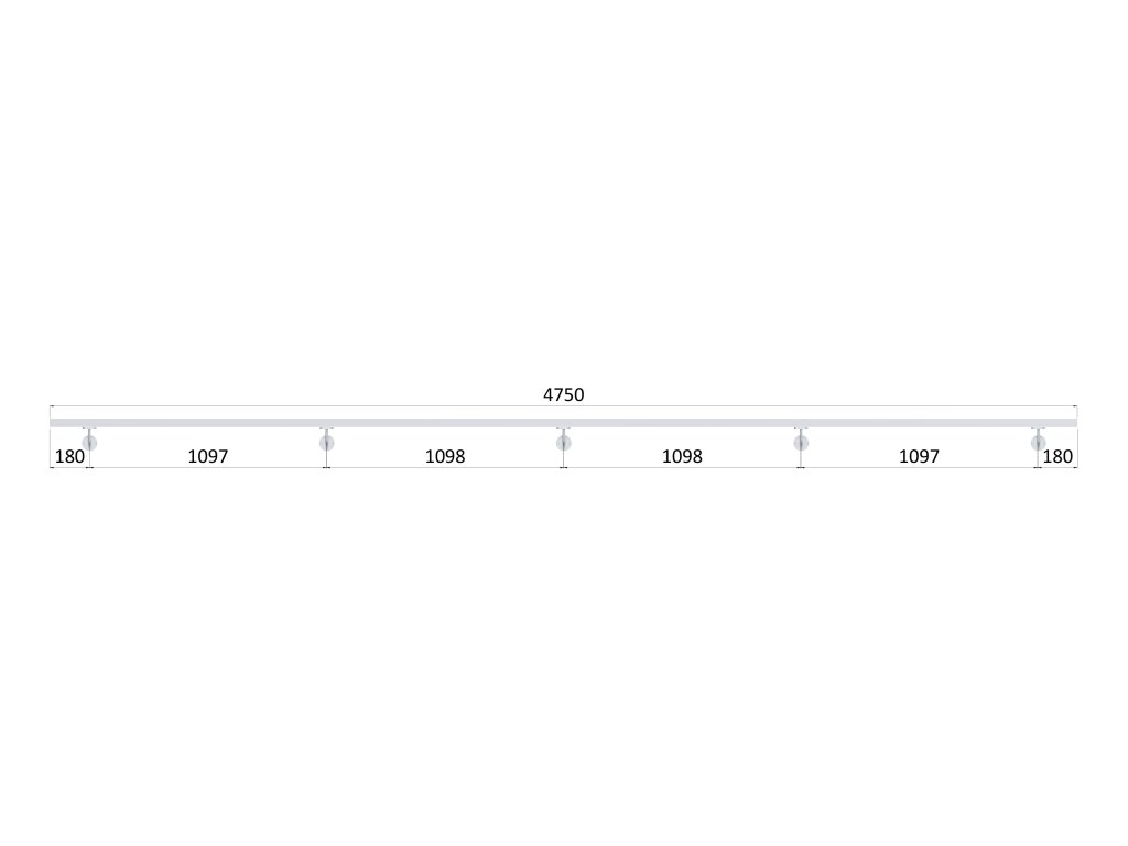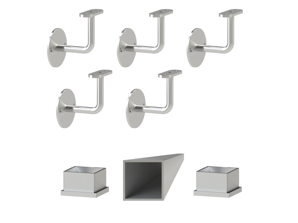 Madlo 4750mm (set:5ks úchyt, madlo 40x40mm s ukončením), brúsená nerez K320 /AISI304