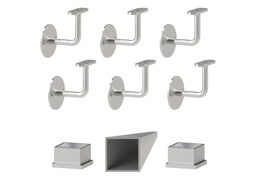 Madlo 6000mm (set:6ks úchyt, madlo 40x40mm s ukončením), brúsená nerez K320 /AISI304