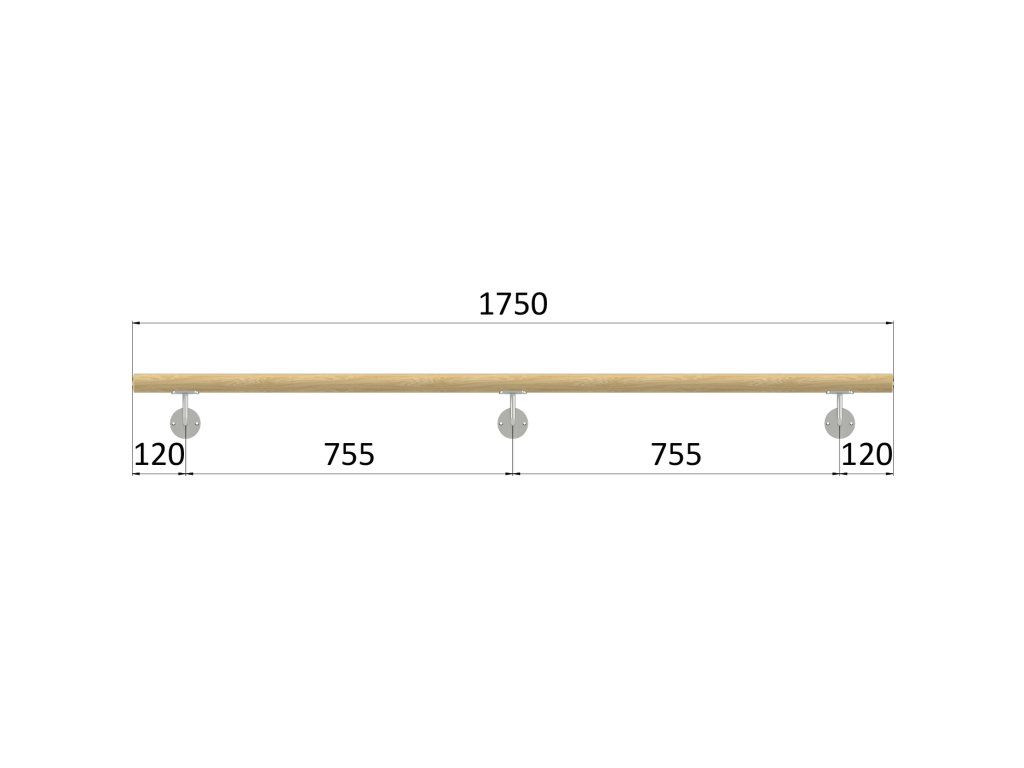 Madlo dřevěné (1750 mm), materiál: buk, broušený povrch bez nátěru, set: 3ks úchyt, madlo s ukončenímDoplňkové parametry