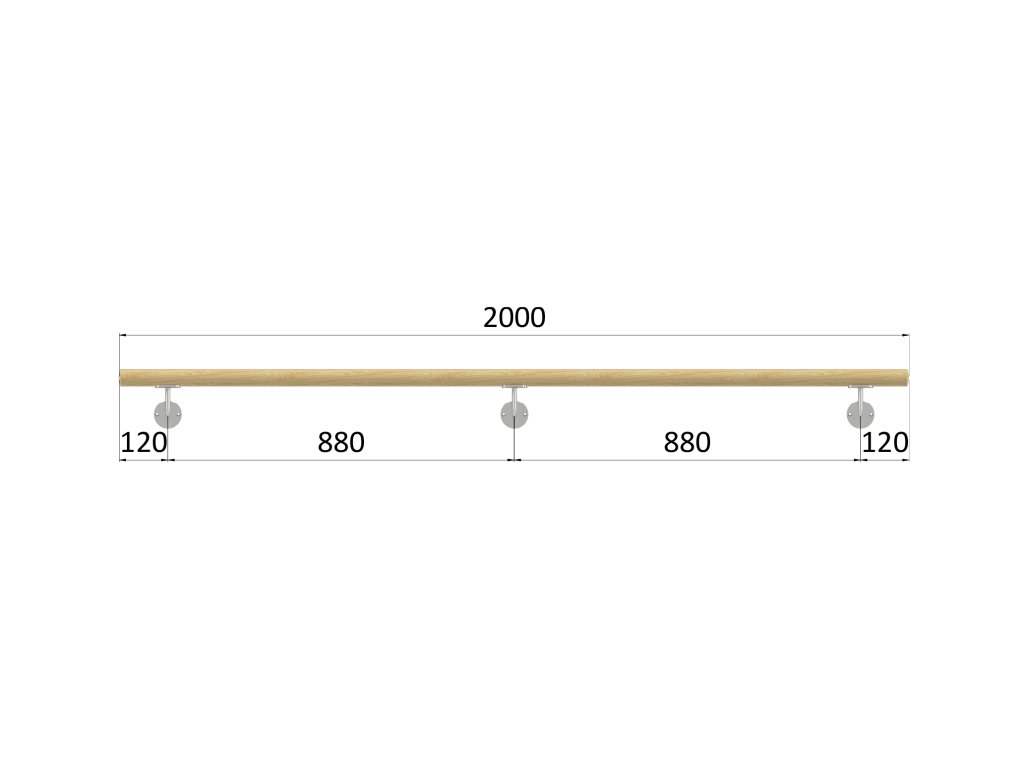 Madlo dřevěné (2000 mm), materiál: buk, broušený povrch bez nátěru, set: 3ks úchyt, madlo s ukončenímDoplňkové parametry