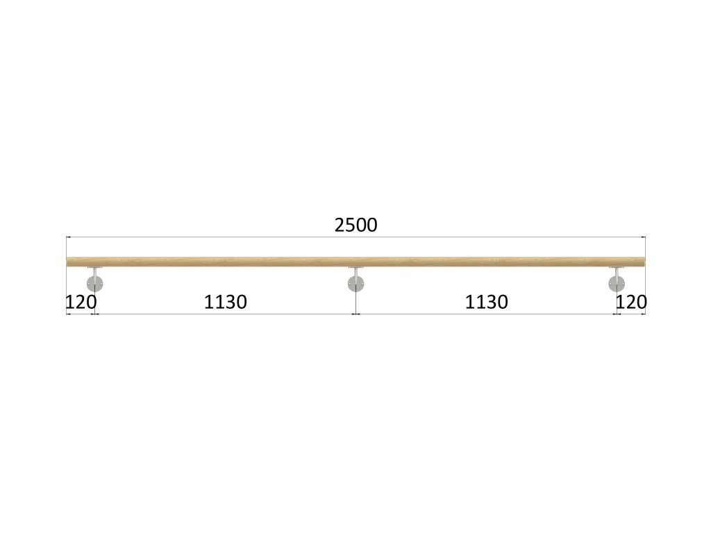 Madlo dřevěné (2500 mm), materiál: buk, broušený povrch bez nátěru, set: 3ks úchyt, madlo s ukončenímDoplňkové parametry