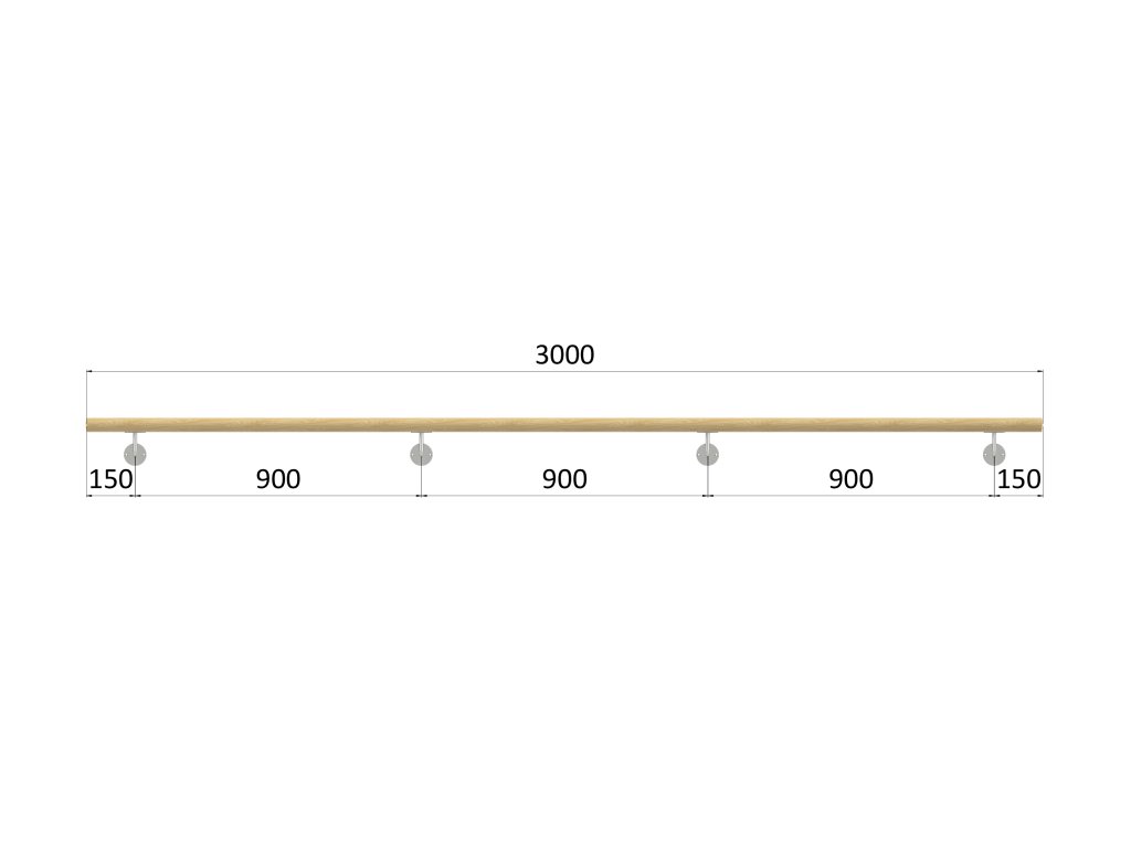 Madlo dřevěné (3000 mm), materiál: buk, broušený povrch bez nátěru, set: 4ks úchyt, madlo s ukončenímDoplňkové parametry