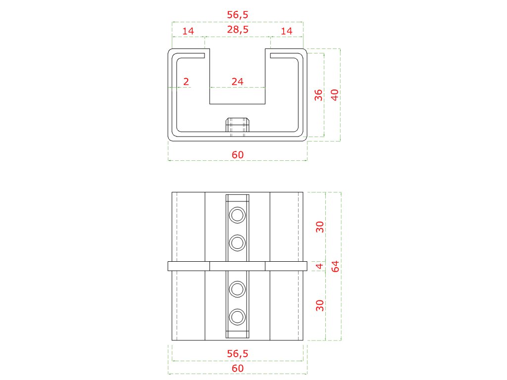 prechod - priamy (60x40x1.5mm) na madlo EB1-JHM60x40, lepený spoj, brúsená nerez K320 /AISI304