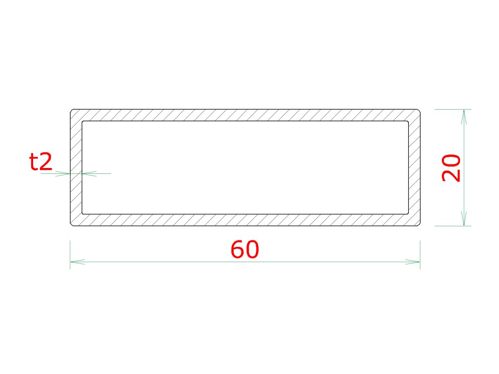 Profil uzavřený 60x20x2 mm, cena za 1ks (1 m), broušená nerez K320 / AISI304Doplňkové parametry