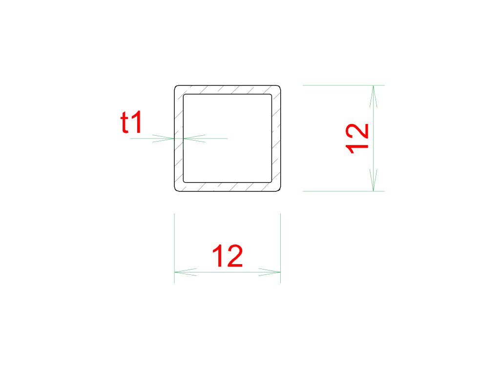 profil uzavřený 12x12x1mm, cena za 1ks (1m), broušená nerez K320 /AISI304,