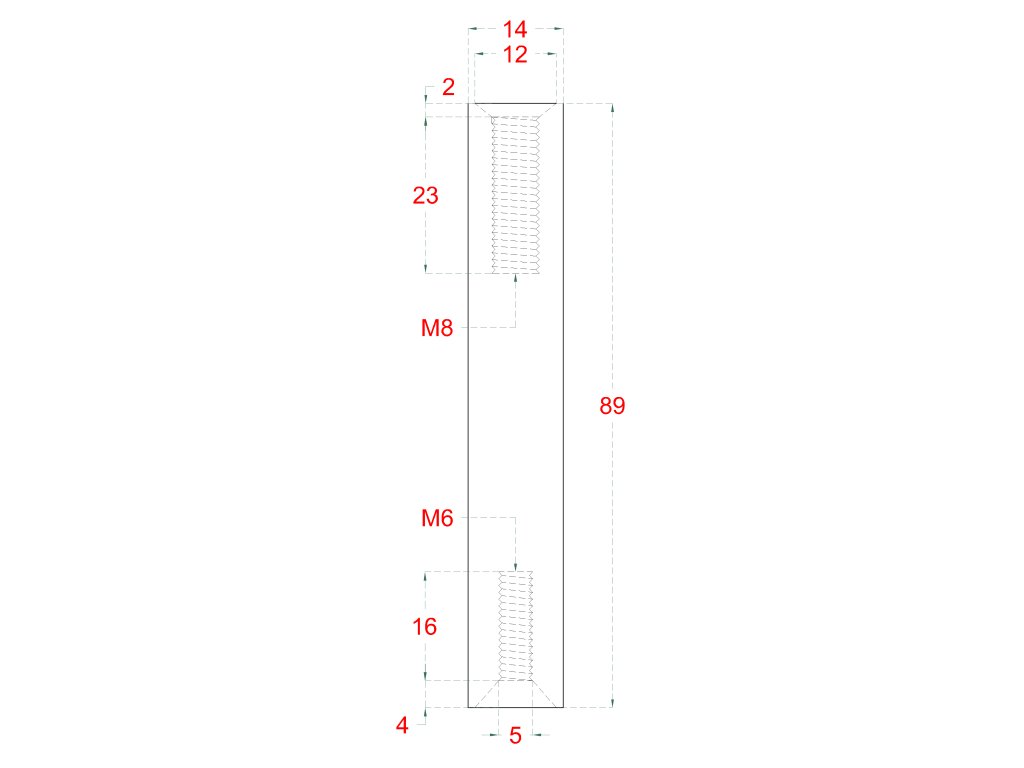 Čep (vnitřní závit M8x25mm / vnitřní závit M6, ø 14mm, L: 89mm), broušená nerez K320 /AISI304