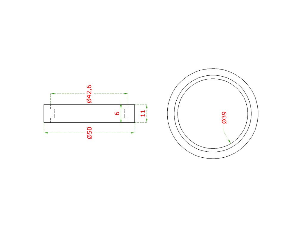 Přechod madla - prstenec, na dřevěné madlo ø 42,4mm, broušená nerez K320/AISI304