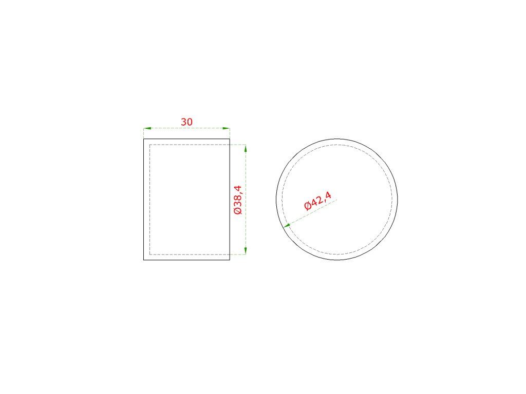 Ukončení (ø 42 mm) na dřevěné madlo EDB-S, broušená nerez K320 / AISI304