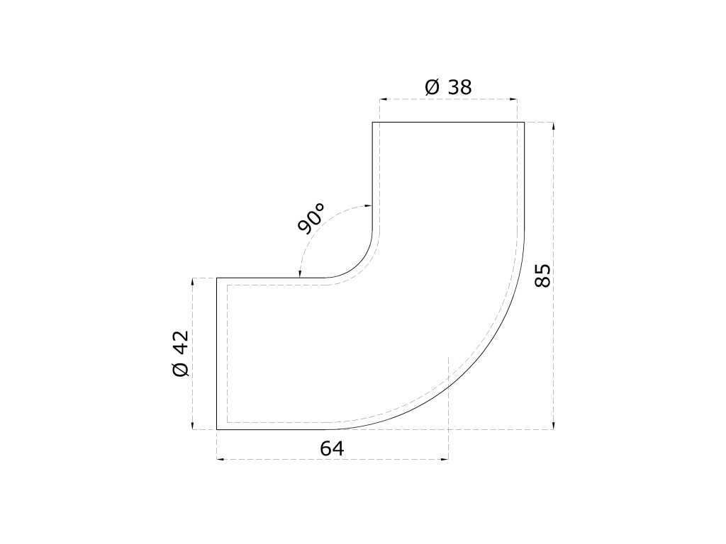 Ukončovací oblouk s mezikusem (ø 42 mm), 90°, na dřevěné madlo EDB-S, broušená nerez K320 / AISI304