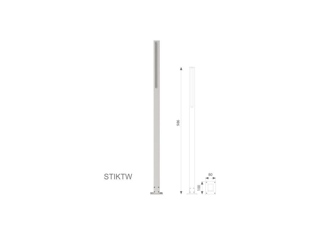 Osvětlení Stik je nabízeno ve třech provedeních - UP s paprsky nasměrovanými vzhůru a DOWN s paprsky nasměrovanými dolů a v provedení M s paprsky nasměrovanými dolů a výškou 750 mm. K dispozici jsou tři barvy RAL 9010, RAL 8019 a RAL 7016.