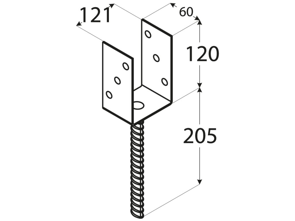 Patka sloupku 121x120x324mm, 4mm žárový pozink, průměr nohy 18mm, počet děr o průměru 11mm-6ks