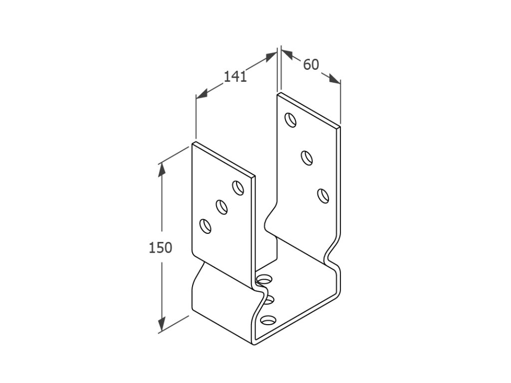 Patka sloupku 141x60x150mm, 4mm žárový pozink, počet děr o průměru 11mm-9ks