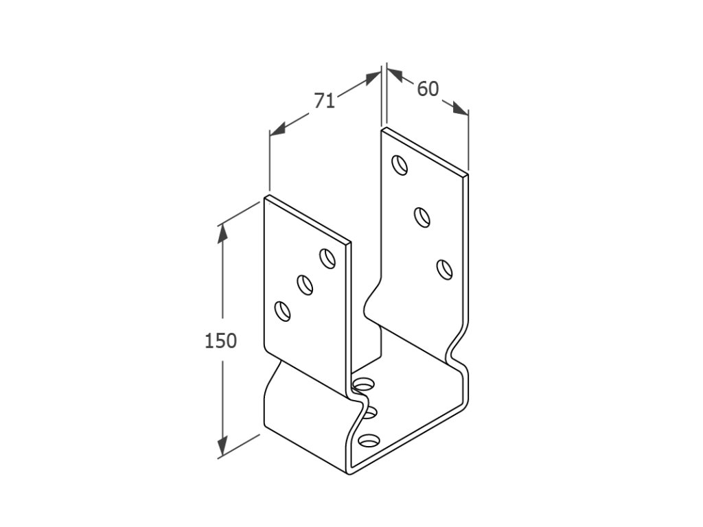 Patka sloupku 71x60x150mm, 4mm žárový pozink, počet děr o průměru 11mm-9ks