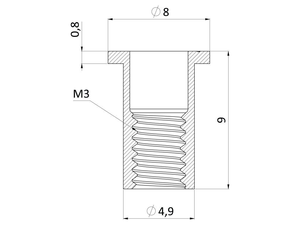 nitovacia matice M3/0.3-1.5/ plochá hlava, rýhovaný driek, VZ L = 9mm