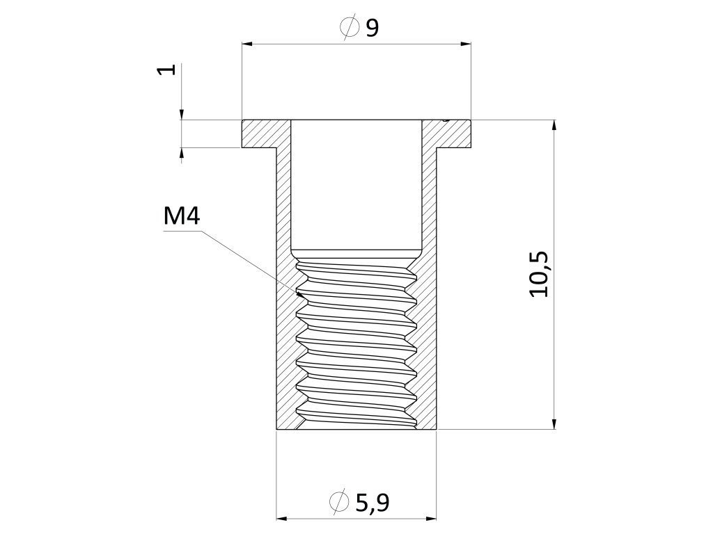 nitovacia matice M4/0.3-2.0/ plochá hlava, rýhovaný driek, VZ L = 10mm