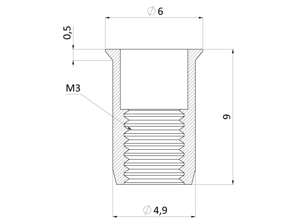 Nýtovací matice M3/0.3-1.5/ mikro hlava, rýhovaný driek, VZ L = 9mm