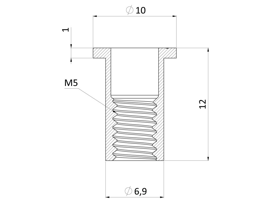 Nýtovací matice M5/0.5-2-5/ plochá hlava, rýhovaný dřík, VZ L = 13mm
