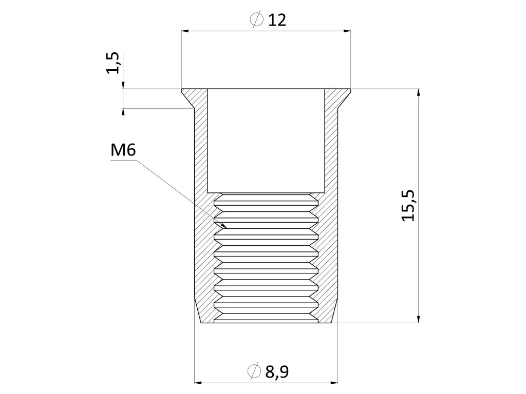 Nýtovací matice M6 se zápustnou hlavou, rýhovaný dřík, ocel-bílý pozinkDoplňkové parametry