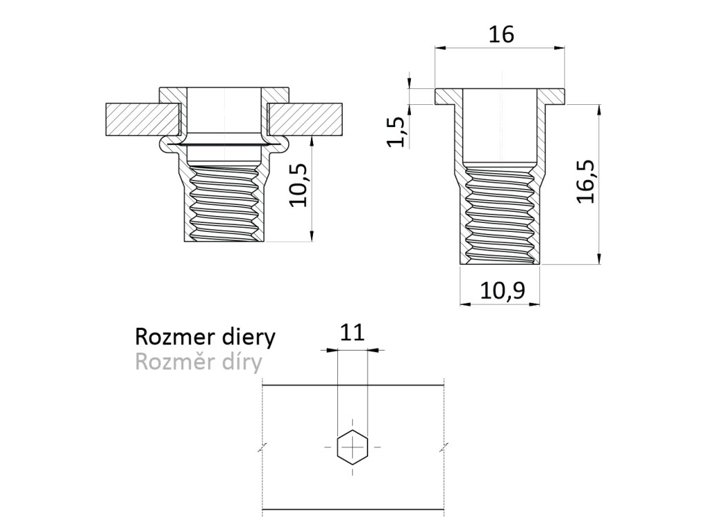 Nýtovací matice M8/0.3-3.0/ plochá hlava, semi-hex, L=14mm