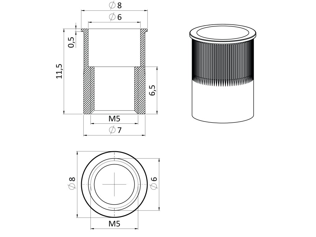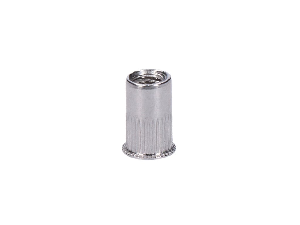 Nerezová redukovaná nýtovací matice M5, zapuštěná hlava, ryhovaný dřík, AISI304