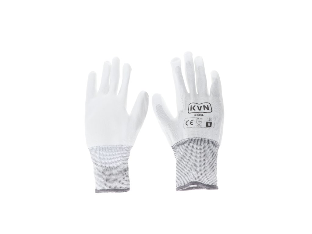 Materiál: 13-gauge bílá polyester s PU povlakem na dlani a prstech