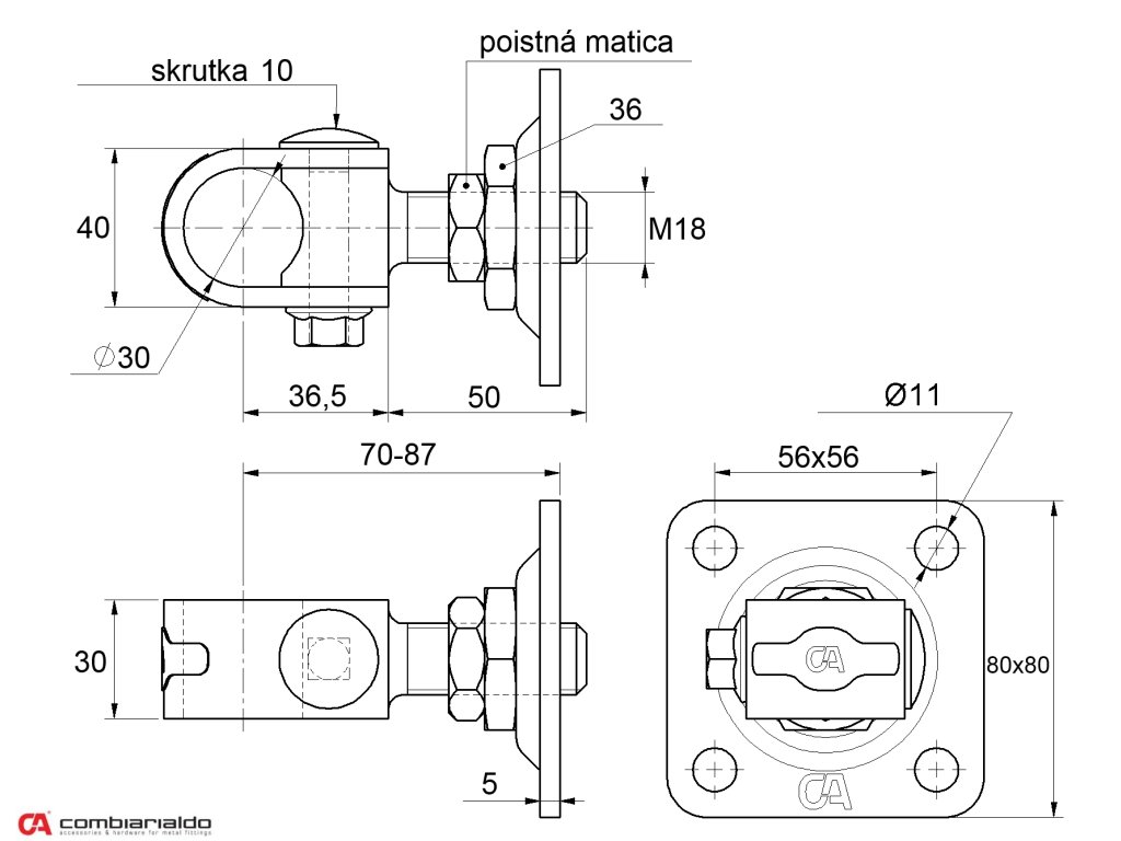 Závěs M18 s plotnou 80 x 80 mm