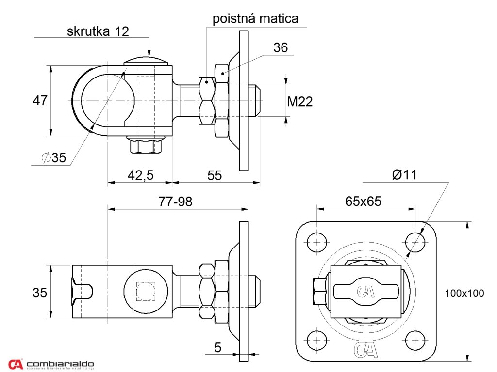 Závěs M22 s plotnou 100 x 100 mm