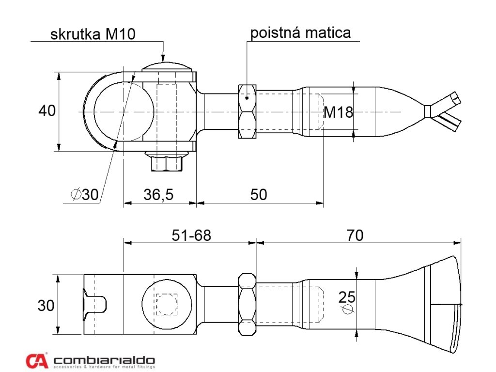 Regulovateľný, navárací záves-pant, závit M18 od popredného talianského výrobcu Combi Arialdo. Povrchová úprava- pozink, časť v tvare U /prizvára sa na krídlo brány/ - bez povrcovej úpravy. Použitie pre ľahké brány. Zaťaženosť krídla zvýši kombinácia so spodným závesom C348/20 a C349/20.Počet kusů v balení - 6.