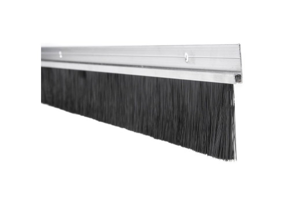 Hliníková těsnící lišta s kartáčem, H = 11 mm; h = 6 mm; L = 14 mm (délka vlasce); A = 5 mm; celková délka 1000mm