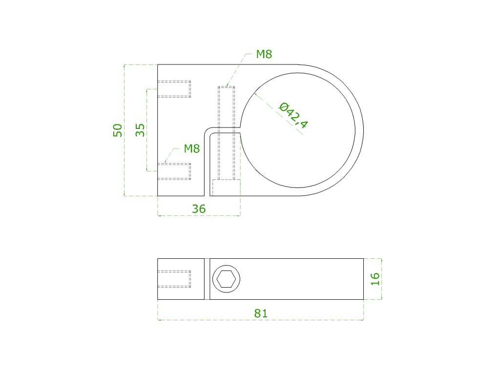 Úchyt šroubovaný na boční kotvení sloupu ø 42,4 mm bez kotevní desky, broušená nerez K320 / AISI304