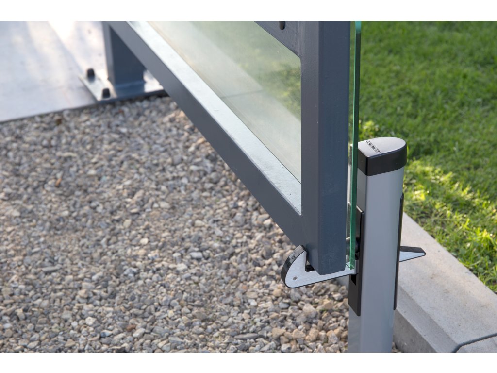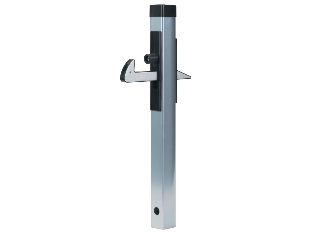 Hliníkový držák vrat s nastavitelným záchytným hákem. Pro profily vrat od 40 mm do 60 mm. Dorazová guma a polyamidový záchytný hák zabraňují poškození rámu vrat. Určen k zabetonování.Technické informace: