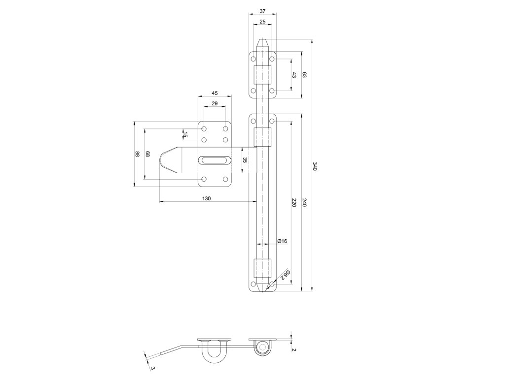 Petlice navařovací ø 16 mm, L: 340 mm, černá, bez povrchovej úpravy