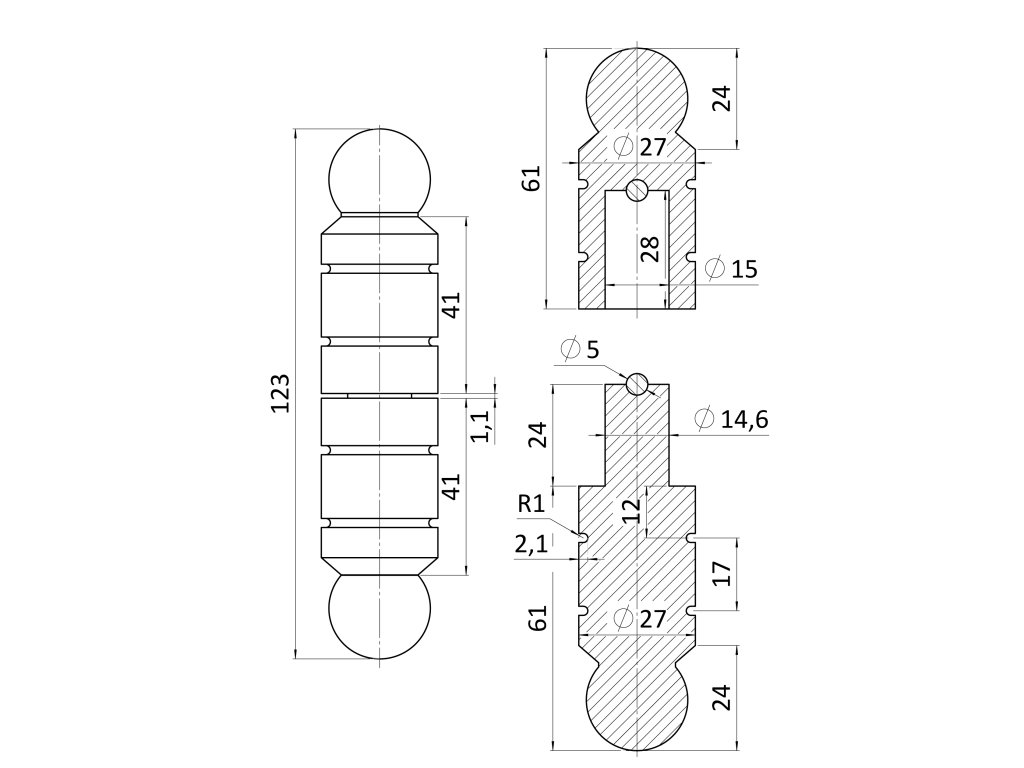 Závěs ozdobný 122x24mm s kuličkouDoplňkové parametry