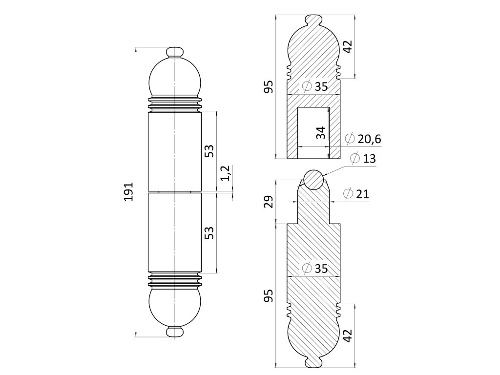 Závěs ozdobný 190x35mm s kuličkou