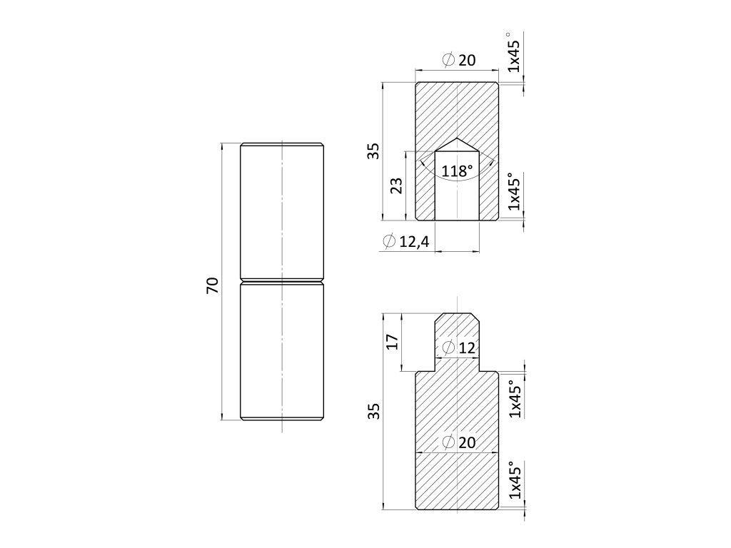 Závěs bez kuličky 70 mm, ø20 mmDoplňkové parametry