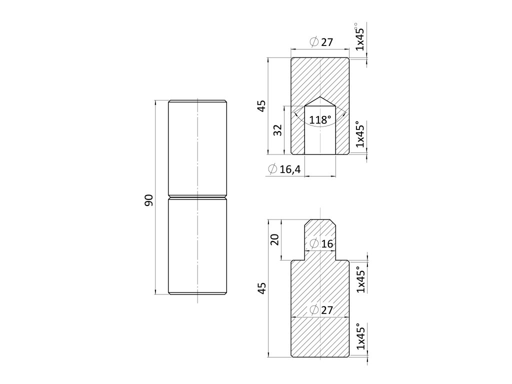 Závěs bez kuličky 90 mm, ø27 mmDoplňkové parametry