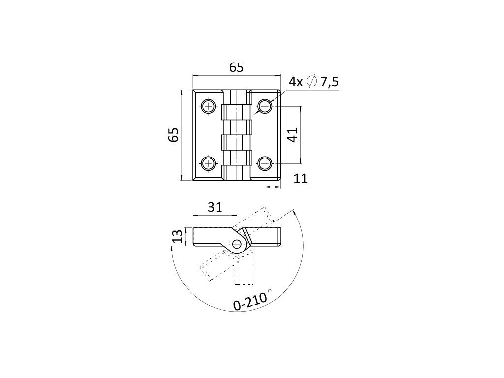 Plastový závěs, rozměr: 65x65mm, tloušťka: 5mm, balení obsahuje šrouby